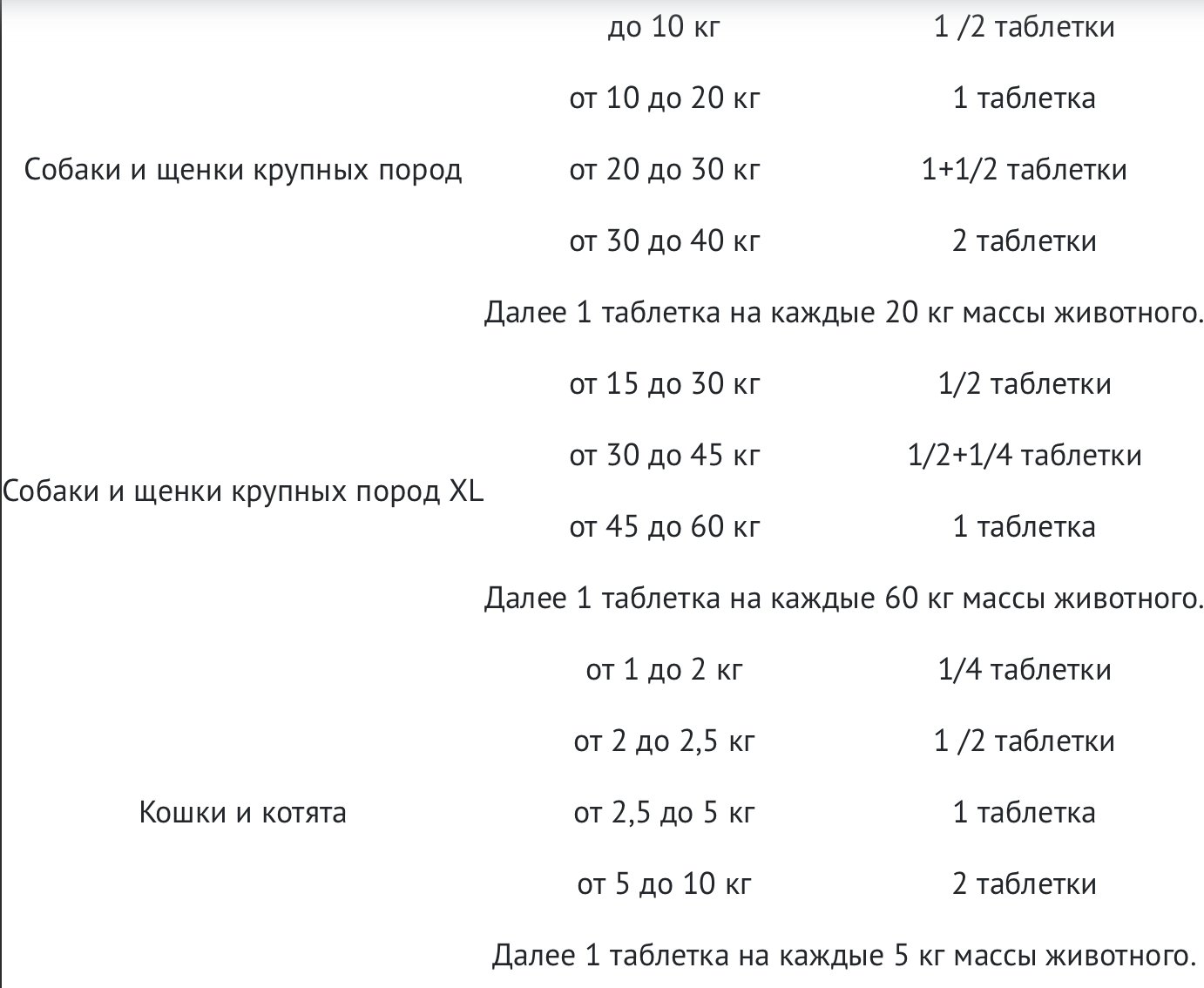 Порядок применения Лекарственный препарат Арбимектин применяют животному внутрь, индивидуально, с небольшим количеством корма или принудительно вводят на корень языка в виде целых, измельченных или растворенных в воде таблеток, в дозе, указанной в таблице. Для лечения (в комплексной терапии) инфекционных заболеваний вирусной и бактериальной этиологии лекарственный препарат Арбимектин применяют собакам и кошкам 2 раза в день, в течение 5-7 дней, далее - 1 раз в день, в течение 5 дней. Для профилактики вирусных заболеваний лекарственный препарат применяют животным 1 раз в день, в течение 3-4 дней. Для снижения вирусной нагрузки и уменьшения осложнений у кошек, больных вирусным лейкозом, иммунодефицитом и коронавирусным энтеритом, лекарственный препарат Арбимектин рекомендуется применять 2 раза в день, в течение 10-14 дней. При лечении животных, больных инфекционными заболеваниями, рекомендуется проводить дезинфекцию мест их содержания во избежание повторного заражения. Особенностей действия при первом применении лекарственного препарата или при его отмене не выявлено. Следует избегать нарушений доз и курса применения лекарственного препарата, так как это может привести к снижению его эффективности. В случае пропуска очередного применения лекарственного препарата его следует применить как можно быстрее в той же дозе и по той же схеме.
