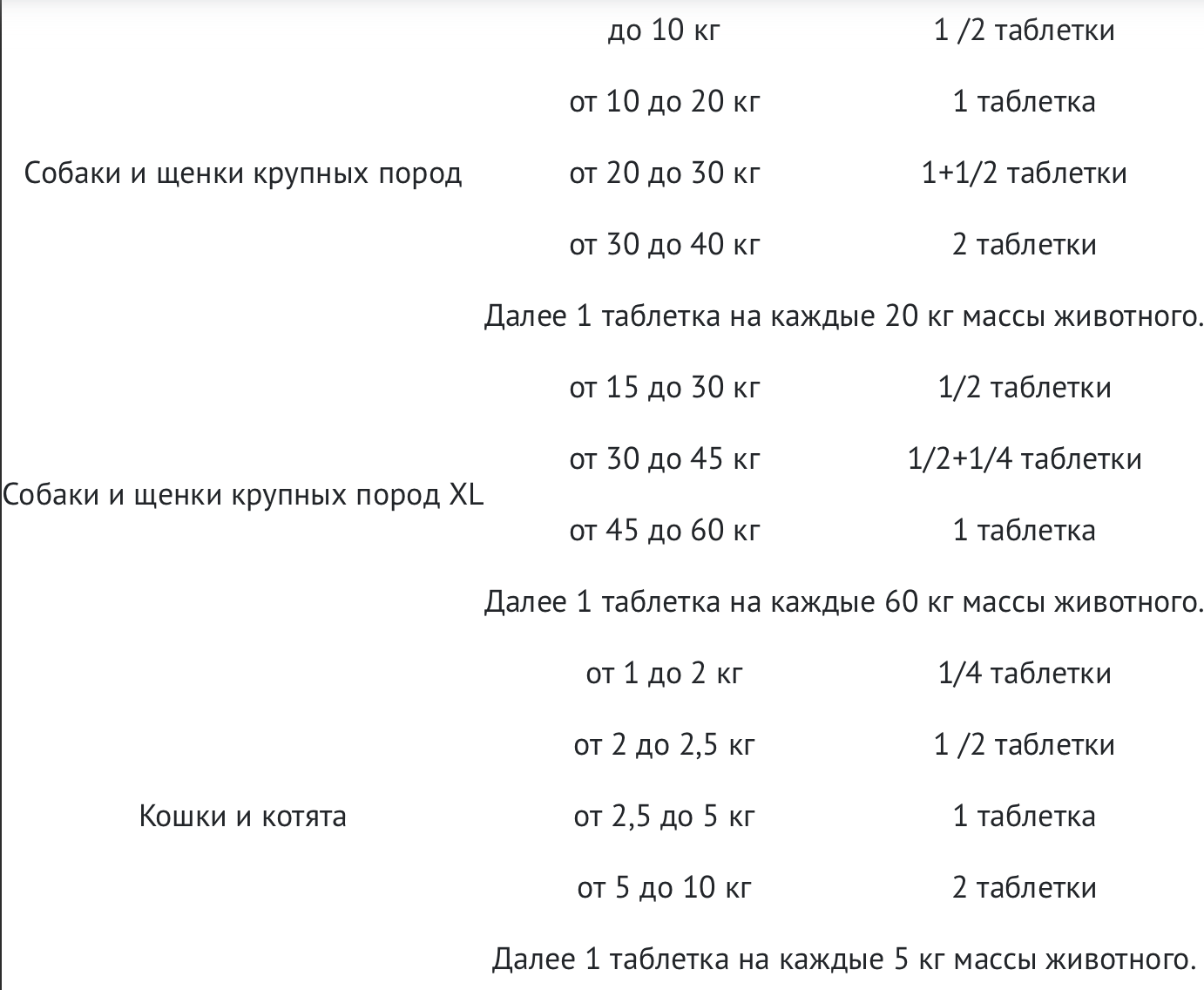 Порядок применения Лекарственный препарат Арбимектин применяют животному внутрь, индивидуально, с небольшим количеством корма или принудительно вводят на корень языка в виде целых, измельченных или растворенных в воде таблеток, в дозе, указанной в таблице. Для лечения (в комплексной терапии) инфекционных заболеваний вирусной и бактериальной этиологии лекарственный препарат Арбимектин применяют собакам и кошкам 2 раза в день, в течение 5-7 дней, далее - 1 раз в день, в течение 5 дней. Для профилактики вирусных заболеваний лекарственный препарат применяют животным 1 раз в день, в течение 3-4 дней. Для снижения вирусной нагрузки и уменьшения осложнений у кошек, больных вирусным лейкозом, иммунодефицитом и коронавирусным энтеритом, лекарственный препарат Арбимектин рекомендуется применять 2 раза в день, в течение 10-14 дней. При лечении животных, больных инфекционными заболеваниями, рекомендуется проводить дезинфекцию мест их содержания во избежание повторного заражения. Особенностей действия при первом применении лекарственного препарата или при его отмене не выявлено. Следует избегать нарушений доз и курса применения лекарственного препарата, так как это может привести к снижению его эффективности. В случае пропуска очередного применения лекарственного препарата его следует применить как можно быстрее в той же дозе и по той же схеме.